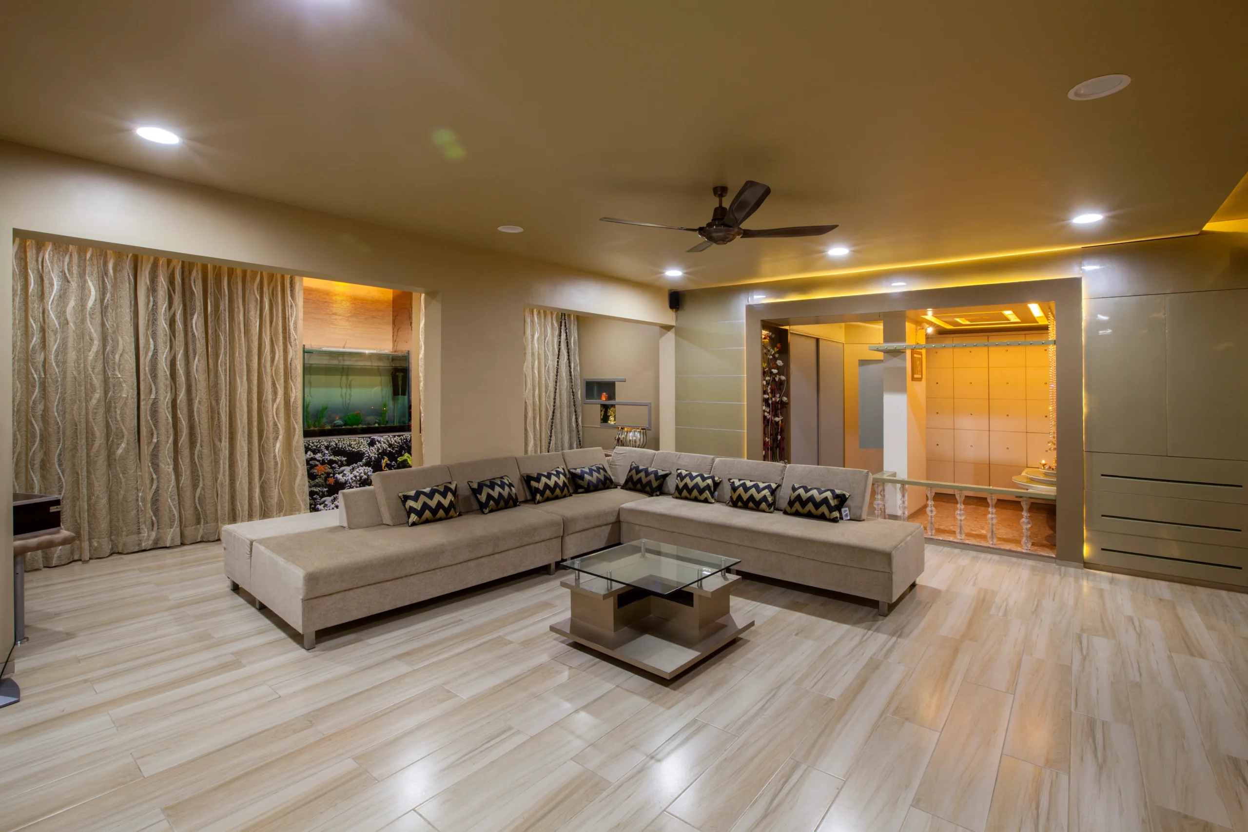 Transform your interiors with elegant false ceiling designs and smart lighting solutions that enhance both style and functionality.